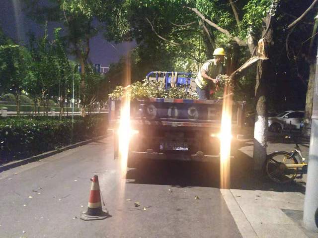 綠化養(yǎng)護隊伍,進行24小時值班巡查,對出現(xiàn)的倒伏樹木、斷枝和破損的市政設施,及時進行消險處理。本次防汛過程中共出動巡查及搶險人員90人次,投入車輛30臺次,清除危亭1處,險樹5處、斷枝4處。不僅保證養(yǎng)護區(qū)域綠化植物安全度汛,更保障了居民安全出行。
