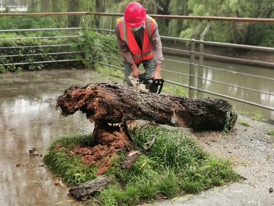 陣風(fēng)10級以上、平均風(fēng)力8級,接連數(shù)天雨水不斷,7月27日,“煙花”中心過境我市,為進一步將“我為群眾辦實事”實踐活動落到實處,進一步體現(xiàn)黨員的先鋒帶頭作用,公司迅速組建黨員先鋒隊,協(xié)助綠化養(yǎng)護人員巡查檢查、清理斷枝、搶險倒伏樹木。