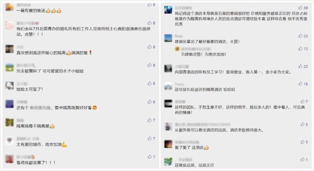 圖▲國(guó)青酒店在互聯(lián)網(wǎng)社交平臺(tái)收到的各種稱(chēng)贊