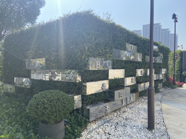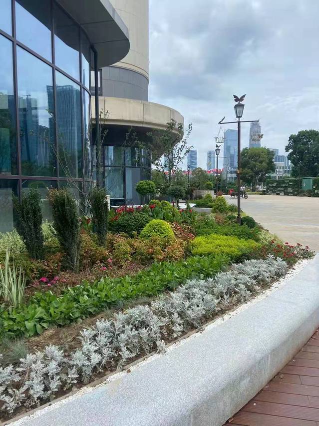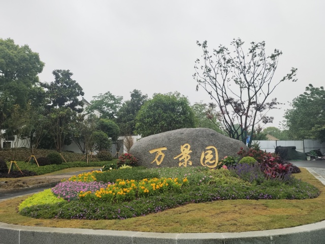 萬景園北入口項(xiàng)目將原始花壇改造成弧形整石花壇,常夏石竹、八仙花、女貞球等彩葉花灌木鋪滿在景觀石的四周,形成植物品種豐富、層次分明的小型花境。入口處增設(shè)標(biāo)有“萬景園”字樣高達(dá)12米的立牌,高大醒目,與魚嘴公園、青年文化公園、綠博園形成了統(tǒng)一的濱江風(fēng)光帶入口標(biāo)識。