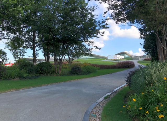綠博園東入口項(xiàng)目在綠植選用上注重運(yùn)用彩葉樹種,中山紅、佛甲草、南天竹等彩葉喬灌木,襯托在綠茵茵的草坪上,增強(qiáng)了觀賞效果。大面積的花崗巖鋪裝,弧形路牙石花壇、多色植物搭配,形成了空間開闊、環(huán)境優(yōu)美的公園出入口景觀。