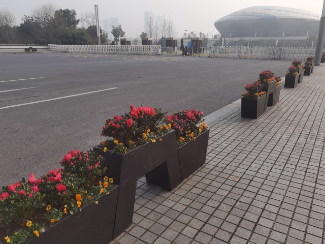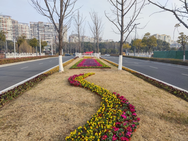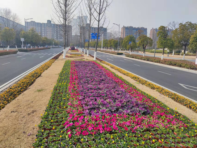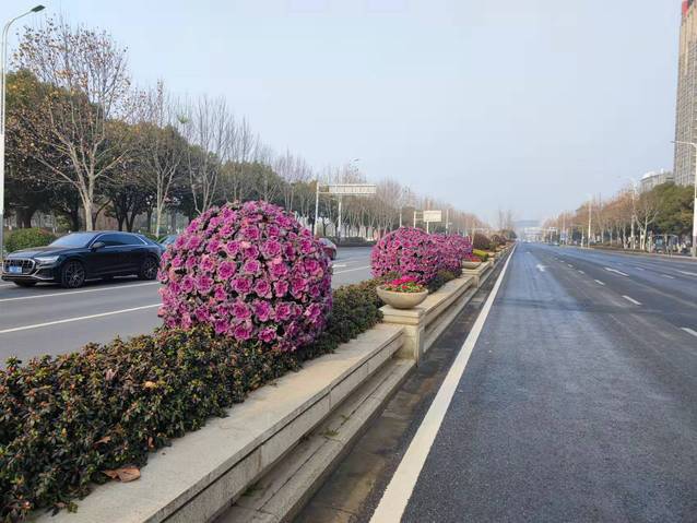 江蘇大劇院水韻路中分帶的花球也換上了“新裝”。10個(gè)巨大的羽衣甘藍(lán)花球被粉色的報(bào)春花和紅黃顏色角堇組成的花帶簇?fù)碇?/span>與兩邊的直線橙色花邊、方形花卉矩陣、流線型花帶一起構(gòu)成了一幅色彩斑斕、氣勢恢宏的絢麗畫卷,不但為兩會(huì)烘托出莊嚴(yán)隆重的氛圍,也洋溢著春節(jié)喜慶的氣氛。