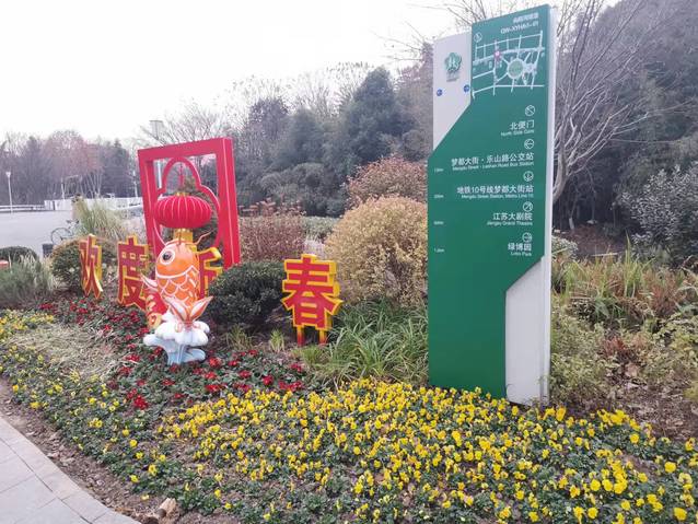南京奧體中心北門夢(mèng)都大街人行道旁新增設(shè)一組 “歡度新春”花境式小品生態(tài)微景觀,深紫色羽衣甘藍(lán)與黃色三色堇植物的搭配,簡潔明了,“鯉魚躍龍門”小品和“歡度新春”字樣的組合營造出濃濃的年味。道路中分帶的花球換上了“新裝”,4個(gè)巨大的羽衣甘藍(lán)花球在太陽下盡情地綻放著,烘托出了冬奧會(huì)的隆重氣氛,寓意在歡度新春佳節(jié)之際,祝愿冬奧會(huì)的奧運(yùn)健兒們能夠魚躍龍門創(chuàng)佳績。